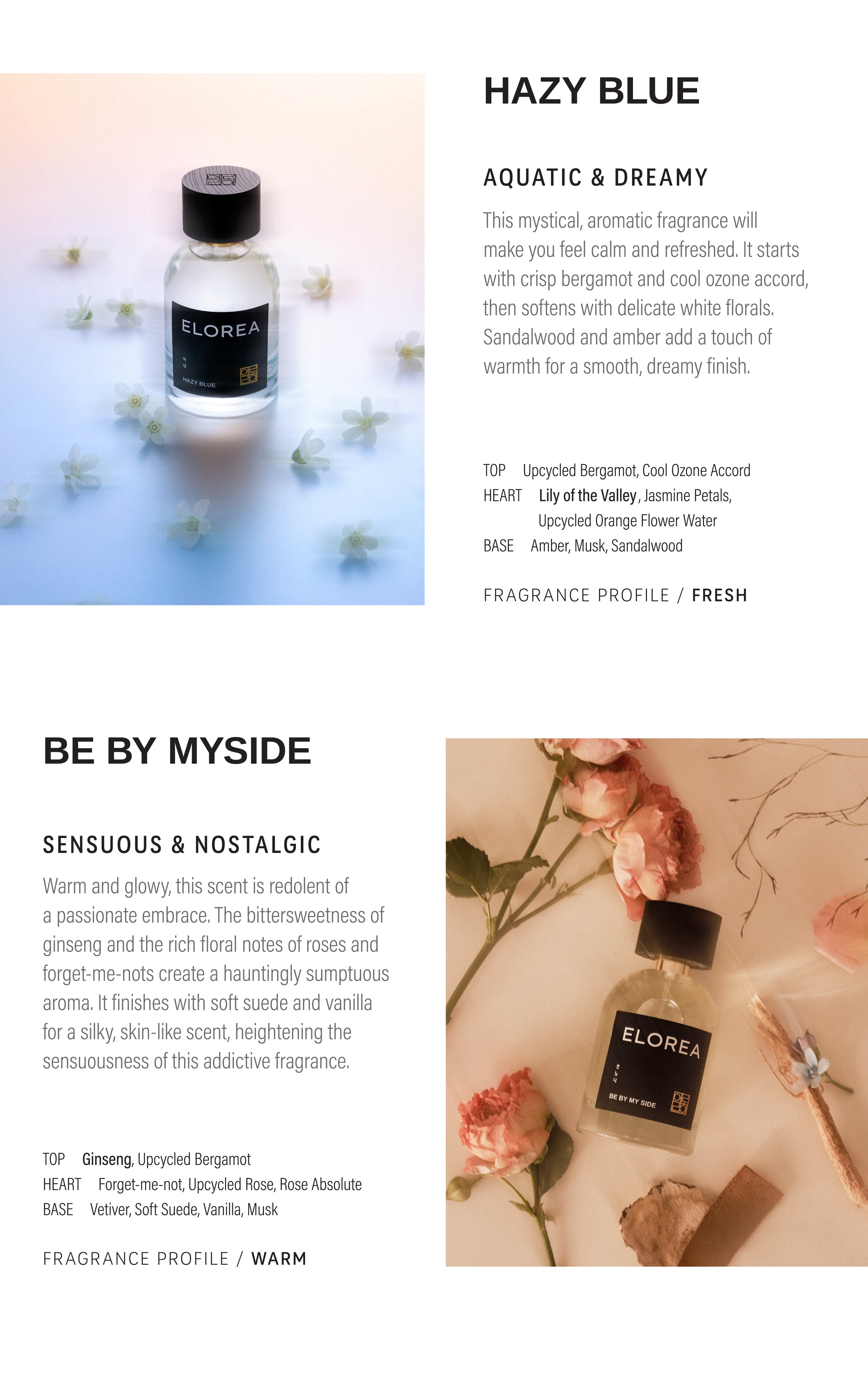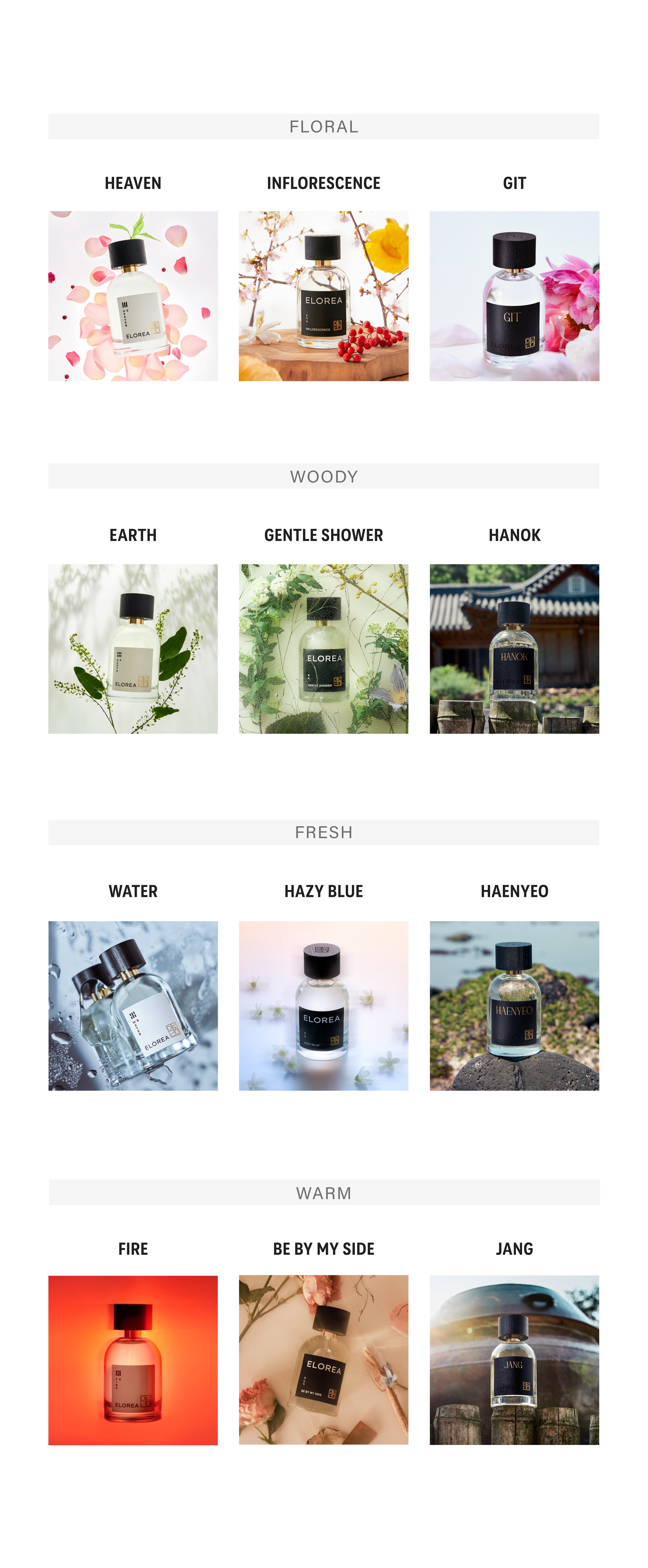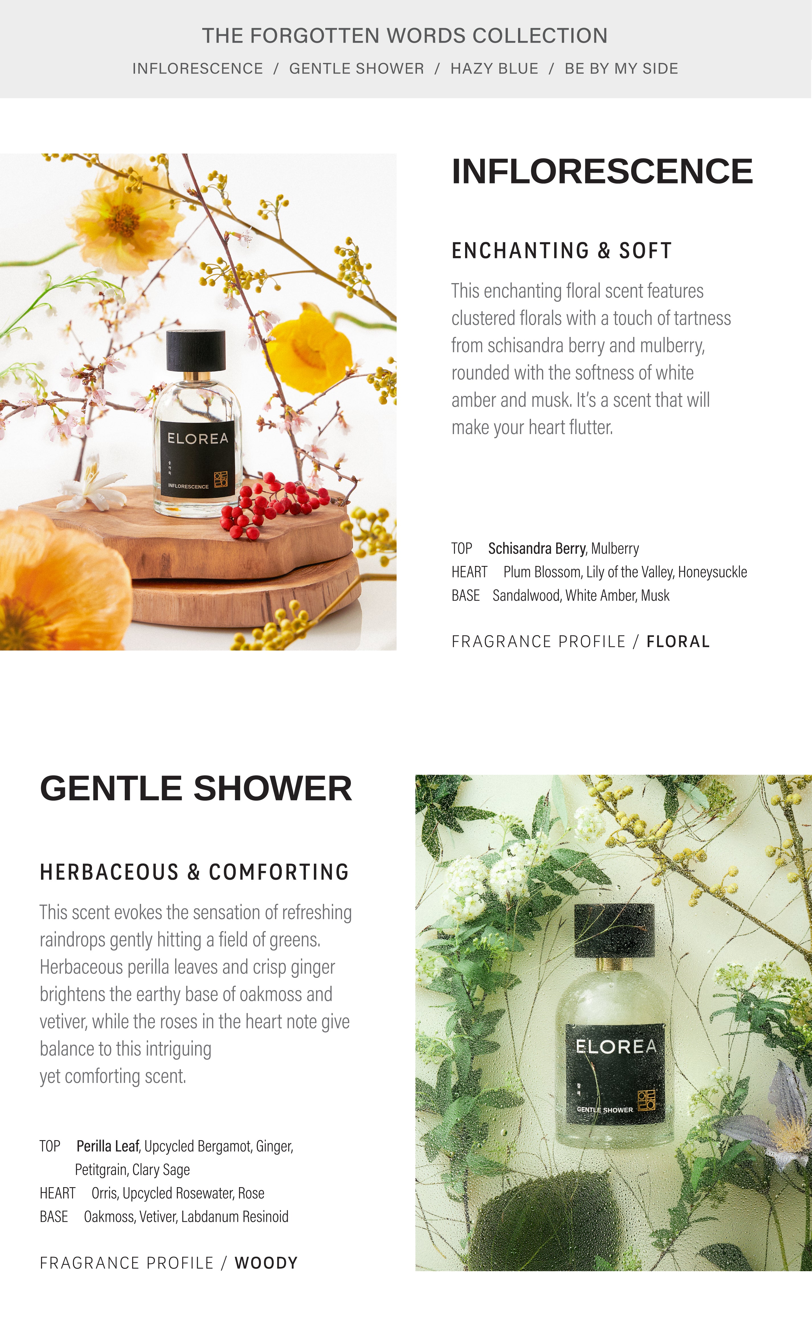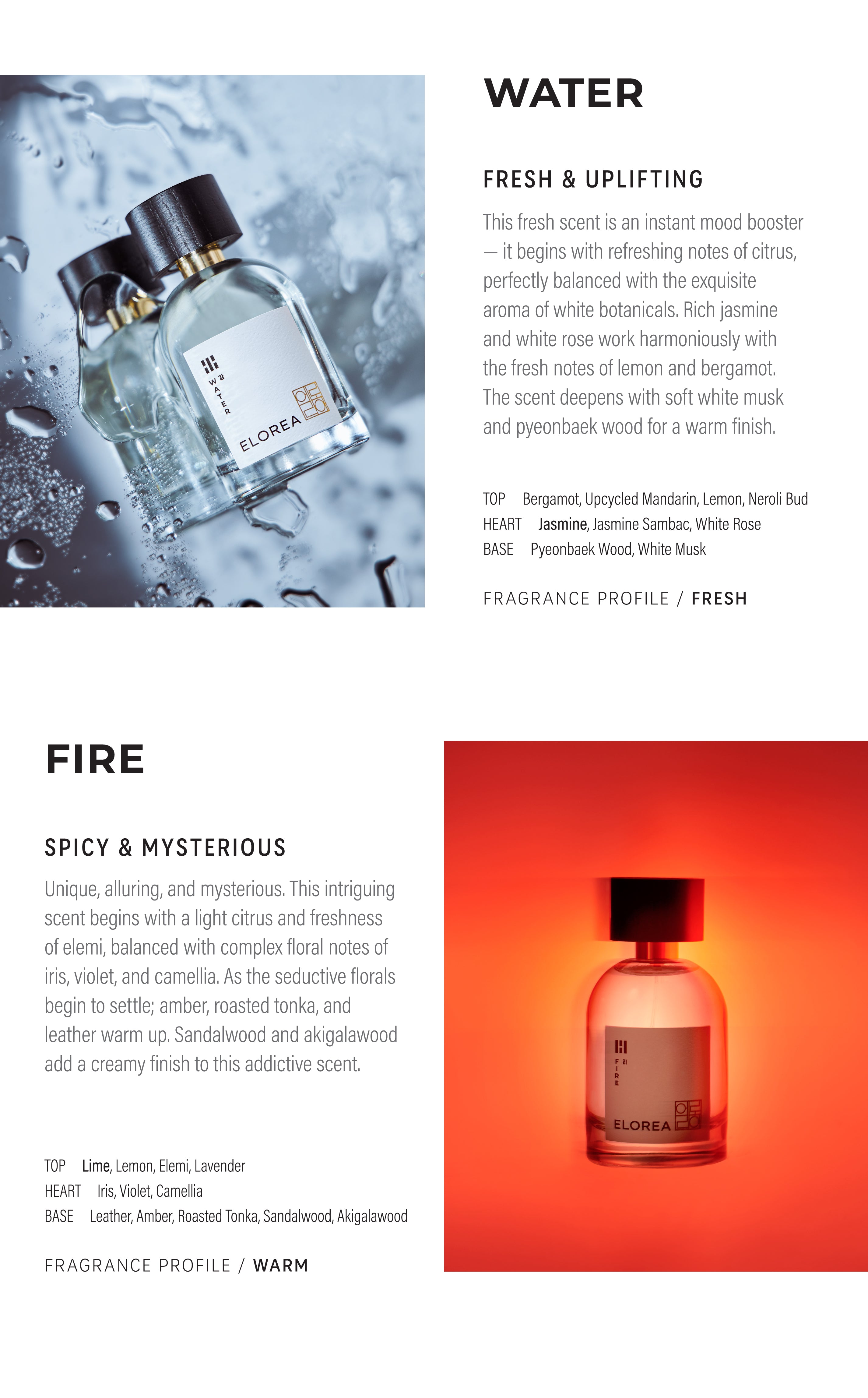 Experience the full collection with the purchase of our discovery set. Every discovery set comes with a voucher of equal value, which you can use towards a full bottle purchase. It can be applied to either 50ml or 100ml. Please note that this voucher cannot be combined with other promotions. This voucher only works online at Elorea.com and will expire in 30 days from the date of purchase.